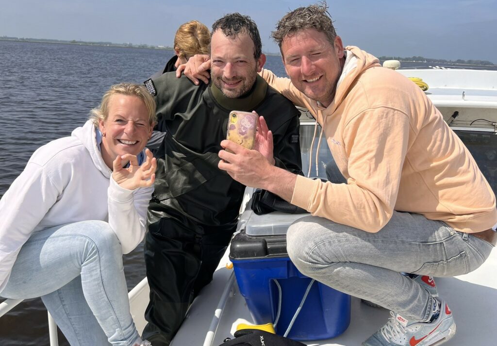 “We wilden graag de telefoon terug. Dus ik heb een oproep op sociale media gedaan. En daar kwamen veel reacties op. Er was een periode waarbij het leek alsof de brandweer ons zou gaan helpen. De brandweer van Sneek beschikt over een duikploeg en zij moeten regelmatig trainen. Uiteindelijk is dat op niets uitgelopen, en heb ik van de brandweer niets meer gehoord. Uiteindelijk ben ik op het spoor gekomen van Recovery Divers uit Rotterdam. Ik heb contact met ze gelegd. Een alleraardigste man wilde ons graag helpen, ook als ze hiervoor naar Friesland moesten rijden.”