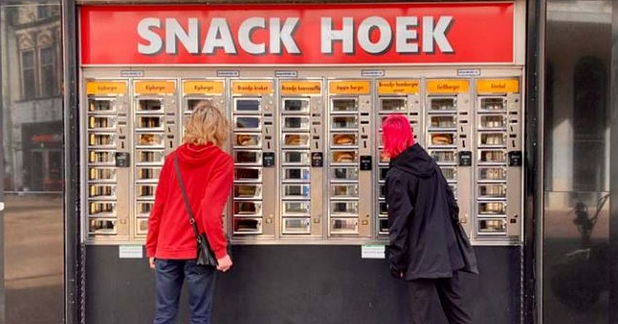 Studenten maken volgende week een tentoonstelling achter de kipburgerklepjes in de snackmuur van Hoek in Groningen. In ruil voor wat kleingeld geeft de automaat dan een kunstwerkje vrij.