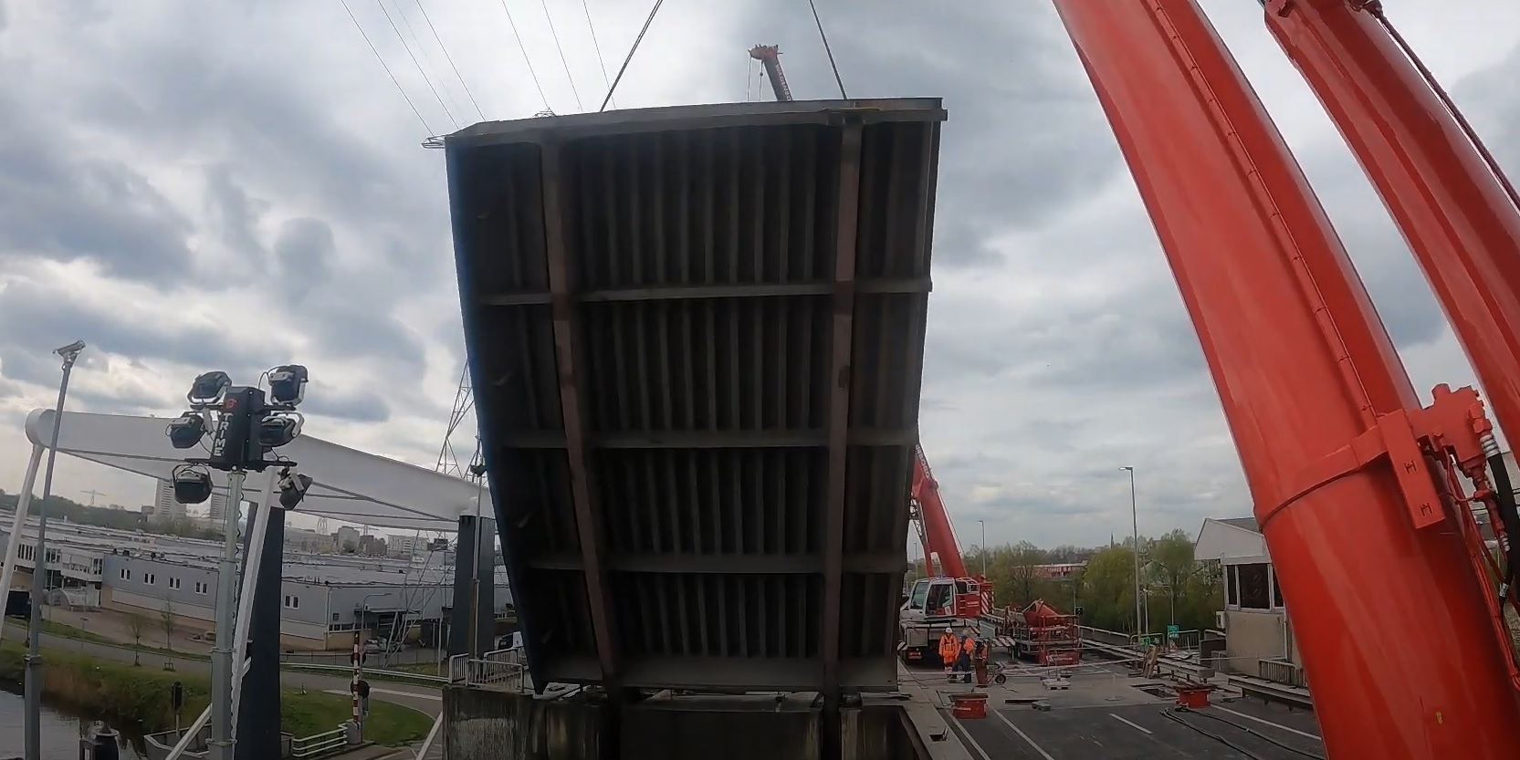 Aanpak Ring-Zuid publiceerde vorige week vrijdag een video, waarin te zien is hoe het uithijsen van het brugdek van de Euvelgunnerbrug in zijn werk gaat.