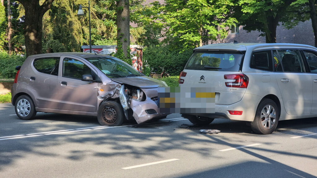 Twee auto’s zijn donderdagmorgen op de Verlengde Hereweg op elkaar geknald.