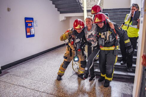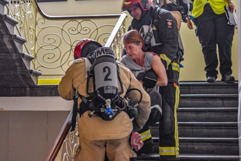 Nieuwsfotograaf Mike Weening: “Brandweerlieden kregen de taak om eventuele slachtoffers te redden en om de brand te blussen. Daarbij werd iedere brandweerman gevolgd door een waarnemer die alles noteerde. Er waren verschillende mogelijkheden om de zaak op te lossen. Belangrijkste aandachtspunt was dat er in het trappenhuis een slachtoffer lag die van de trap was gevallen en gered moest worden. In een ruimte op de bovenste verdieping smeulde een stoel. Daarbij was het belangrijk dat er goed gekoeld werd omdat er anders een rookgasexplosie kon ontstaan. Ook bevond zich in de ruimte een tweede slachtoffer dat gered moest worden.”