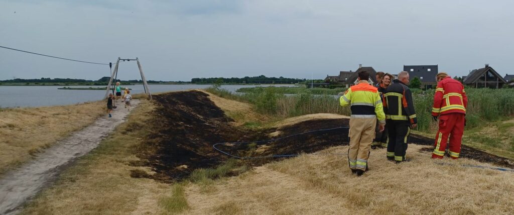 De brandweer wist de flinke brand, die ontstond naast een tokkelbaan voor kinderen in het park, snel in te dammen en te blussen.