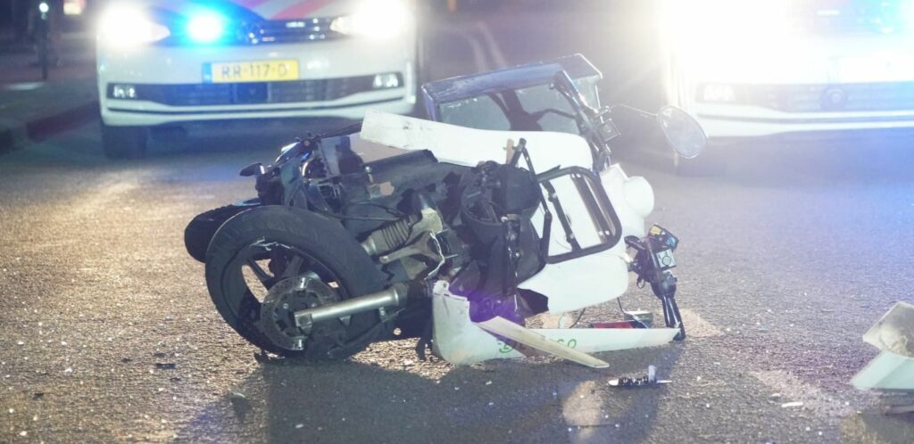 Op de Paterswoldseweg is donderdagavond een bestuurder van een bezorgscooter gewond geraakt door een botsing met een personenauto.