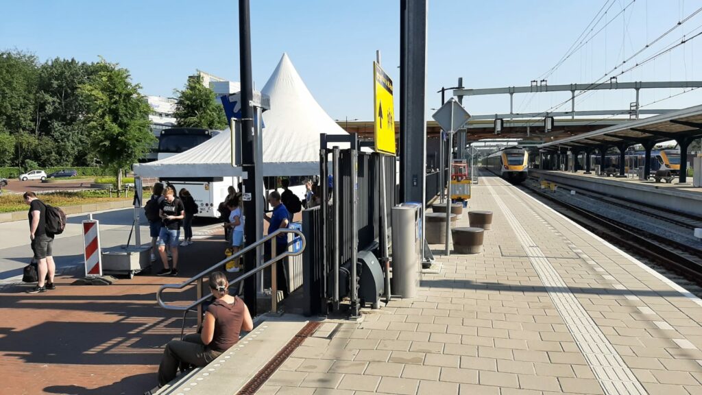 Foto Andor Heij. Treinreizigers uit Groningen wachten in Assen op de snelbus naar Zwolle