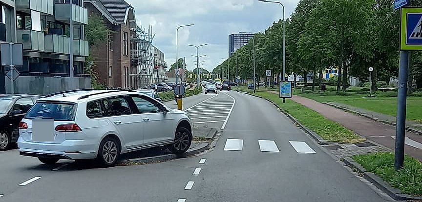 De auto belandde door nog onbekende reden tegen het verkeersobstakel, midden op de weg. Voor zover bekend raakte niemand bij het ongeval gewond.