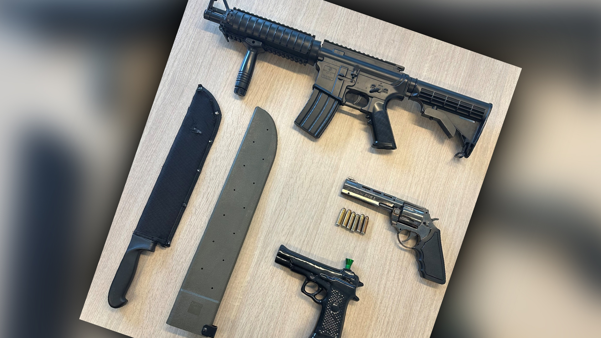 Eenmaal binnen bleek dat de Stadjer niet één (nep)wapen in bezit had, maar een compleet arsenaal. Agenten troffen twee nepwapens, een balletjeswapen (airsoft) en een groot kapmes aan. Al het wapentuig is in beslag genomen en wordt vernietigd.