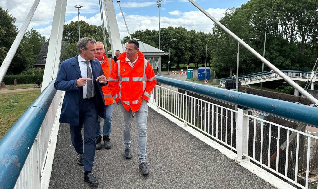 Harbers ging vervolgens langs bij de Gerrit Krolbrug. De minister noemde de brug op Twitter, na zijn bezoek, een ‘belangrijke verbinding over het Van Starkenborghkanaal’ en stelt dat er hard gewerkt wordt aan een tijdelijke verbinding, die naar verwachting eind 2023 af is.