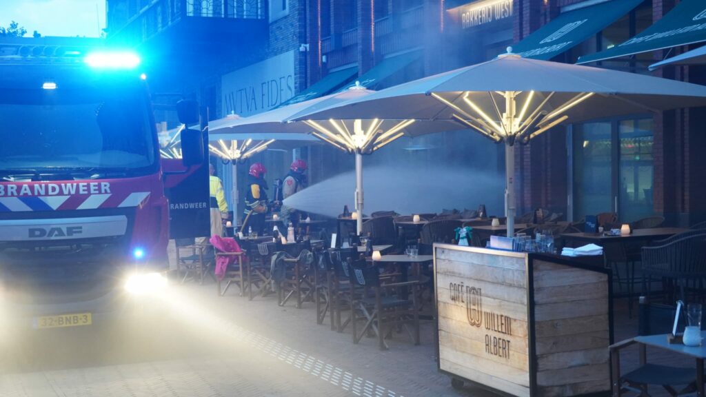 Inmiddels is het terras en het restaurant weer open. “Zoals ik zei, het was ontzettend schrikken, maar het valt allemaal reuze mee. Het restaurant zit inmiddels al flink vol, en ook op het terras is het gezellig. En als ik naar buiten kijk dan zie ik de zon ook langzaam tevoorschijn komen. Dat zonnetje kunnen we heel goed gebruiken.”