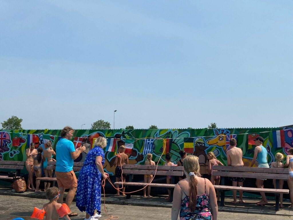 Een speciale rol was er dit weekend weggelegd voor graffitikunstenaar Elroy Gramsbergen. Samen met zijn collega Quinten van Duuren hebben zij dit weekend gewerkt aan een groot kunstwerk in het zwembad. “Het was een warm, gezellig en een benauwd weekend”, vertelt Gramsbergen lachend. “In het zwembad was al een kunstwerk, maar dat is door de jaren heen weggezond. Zeg maar vervaagd. Aan ons is onlangs gevraagd om een nieuw kunstwerk aan te brengen, over de gehele muur, inclusief de onderkant.”