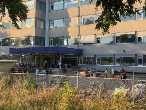 De onlangs geopende noodopvanglocatie voor asielzoekers aan de Europaweg is zaterdagavond enige tijd ontruimd geweest vanwege een brand. Niemand raakte gewond.