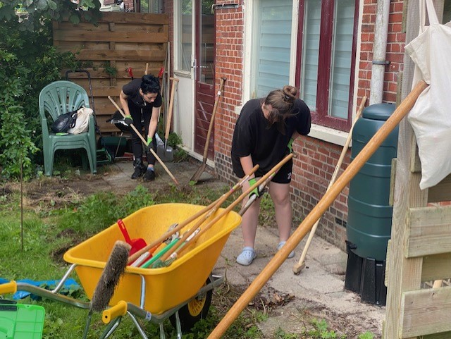 Tijdens het tuinieren zingen de jongeren Oekraïense liederen, zoals het Oekraïense volkslied. Ook vrijwilligers van het wijkbedrijf Het Groenhuis helpen mee. Ondanks dat de groep het gezellig met elkaar heeft, wordt er hard gewerkt. ‘It’s hard work, but we can do it’, zegt een Oekraïense stralend.