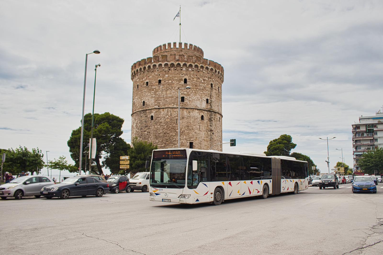 “Het zijn oude bussen van Qbuzz. Die worden hier in Thessaloniki gebruikt door het bedrijf O. Α. Σ. Θ. In Groningen nam Qbuzz het busvervoer in 2009 over van Arriva. Het gaat om bussen uit de eerste Qbuzz-serie. Die hebben ongeveer tien jaar in Groningen gereden en zijn daarna via een tussenhandelaar aangeboden op de markt. En eigenlijk iedereen kan dan zo’n bus kopen. Dit Griekse bedrijf heeft een hele serie Qbuzz-bussen gekocht.”