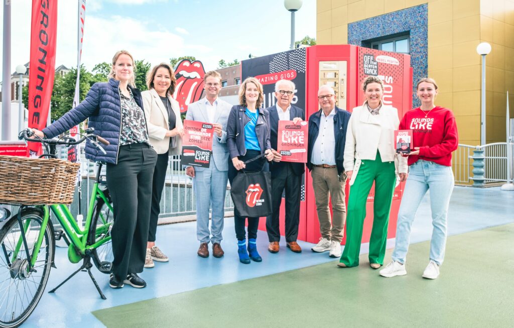 Wethouder Carine Bloemhoff nam maandagochtend de eerste toolkit in ontvangst vanuit de Campagne ‘Sounds Like Groningen’ voor het Groninger Museum. Met het drukwerk in de toolkit kunnen ondernemers hun etalages aankleden rond de optredens van onder meer Rammstein en rond de tentoonstelling ‘Unzipped’ rond de Rolling Stones in het Groninger Museum.