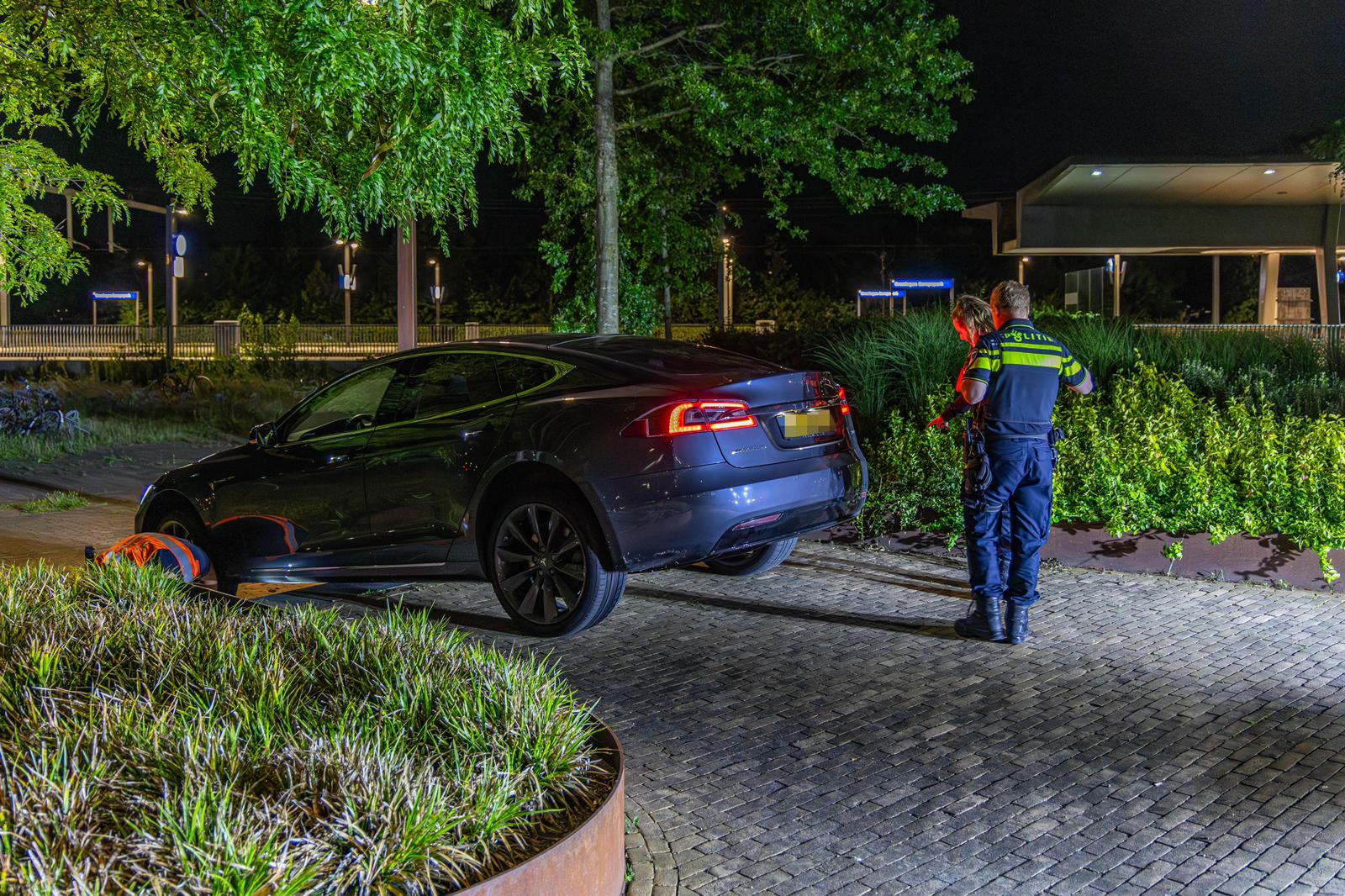 Het voorval gebeurde in het begin van de nacht. “Het gaat om een Tesla”, beschrijft de fotograaf de situatie. “De bestuurder is afgeslagen, is de stoep op gereden, en heeft vervolgens de trap genomen naar beneden. Daarbij kwam de auto al snel vast te zitten.” Hulpdiensten waren snel aanwezig. “De bestuurder is aangehouden. Uit een controle bleek dat hij te diep in het glaasje heeft gekeken.”