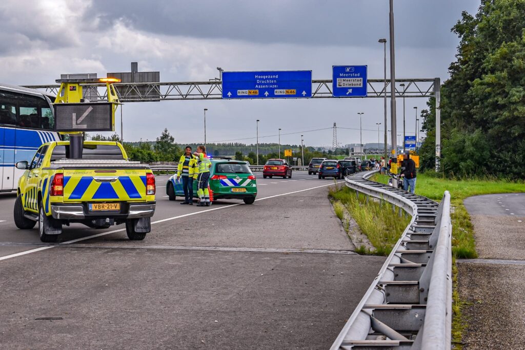 De melding van het ongeluk kwam rond 13.50 uur bij de hulpdiensten binnen. “Het ongeluk heeft plaatsgevonden vlak na de Driebondsbrug, in de rijrichting Westerbroek, bij de afslag Meerstad”, vertelt Weening. “De automobilist van een personenauto is door onbekende oorzaak op zijn voorganger gebotst. De inzittenden van beide voertuigen zijn na het ongeluk achter de vangrail gaan staan, niemand raakte gewond.”