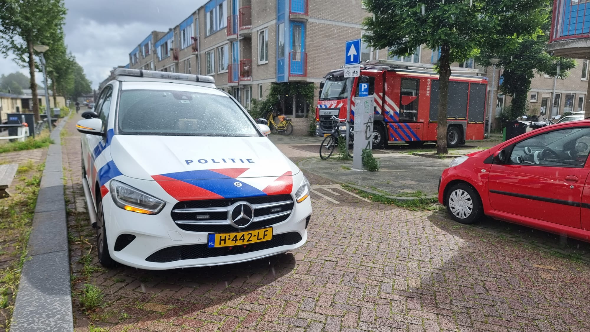 De brandweer wist het vuur snel te doven. Ook de politie kwam langs om een kijkje te nemen. Na een korte inzet nam het hulpdienstengezelschap haar vertrek.