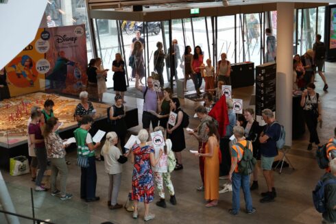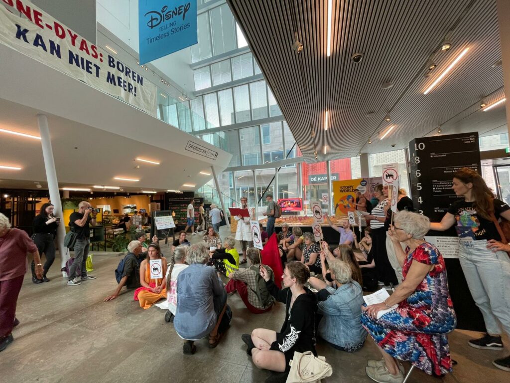 Op de begane grond van Forum Groningen werd zaterdagmiddag geprotesteerd. Foto: Rick ten Cate – tencatefotografie.nl