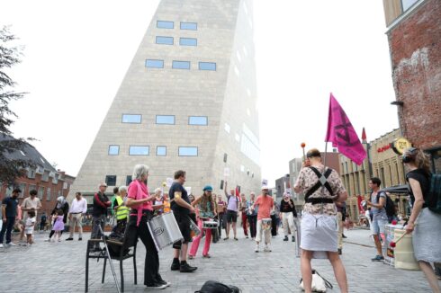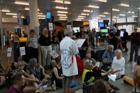 Enkele tientallen personen hebben zaterdagmiddag in Forum Groningen geprotesteerd tegen de voorgenomen gaswinning bij Schiermonnikoog. Het gaat om een actie van Scientist Rebellion, Extinction Rebellion en de klimaatgroep Fossielvrij NL.