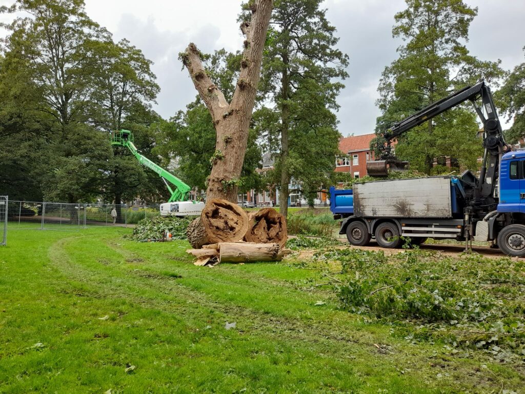 Eén van de populieren in het Noorderplantsoen die om dreigde te vallen is door de gemeente omgehaald. Met het verdwijnen van de boom is wel de thuis van een nijlgans verdwenen.