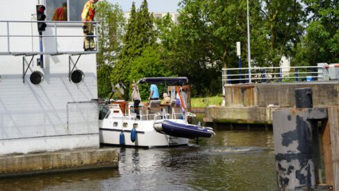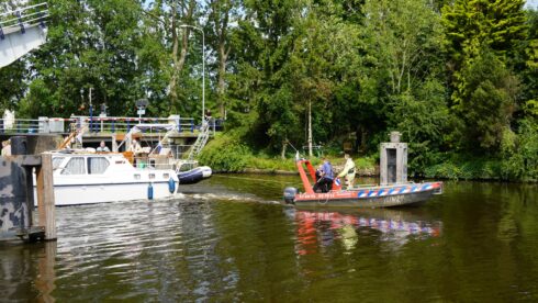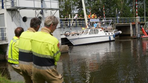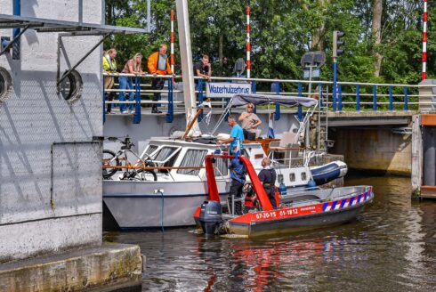 Hulpdiensten hebben de brandweerboot te water gelaten. Tussen de boten werd een verbinding gemaakt. Ook een andere boot, die lag te wachten, schoot te hulp. In combinatie met een sjorverbinding naar de wal, lukte het rond 13.15 uur om de boot bij de brug vandaan te krijgen. “Dat ging met enig gejuich van de opvarenden”, vertelt Weening. “Daarna ging de brug al snel open, zodat iedereen zijn weg kon gaan vervolgen.”