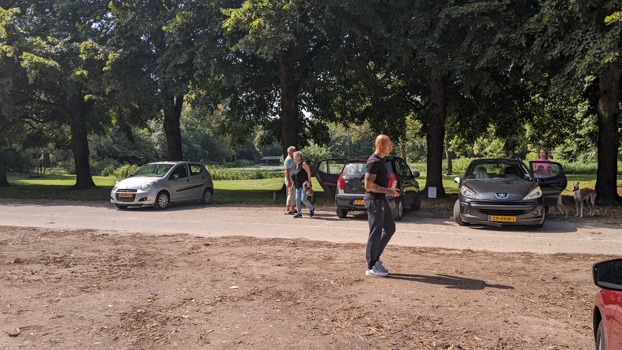 De hoge temperaturen zijn niet voor iedereen even prettig. Voor honden is het al snel te heet, legt een baasje uit. “Het wordt zo 27 graden. Dat is wel iets te warm, zeker voor hun”, zegt hij terwijl hij naar twee rennende honden wijst. “Door de warmte kunnen ze oververhit raken.” Vandaar dat de twee nu worden uitgelaten. En zelfs als het koeler is, zoeken de honden verkoeling in de wateren van het Stadspark.