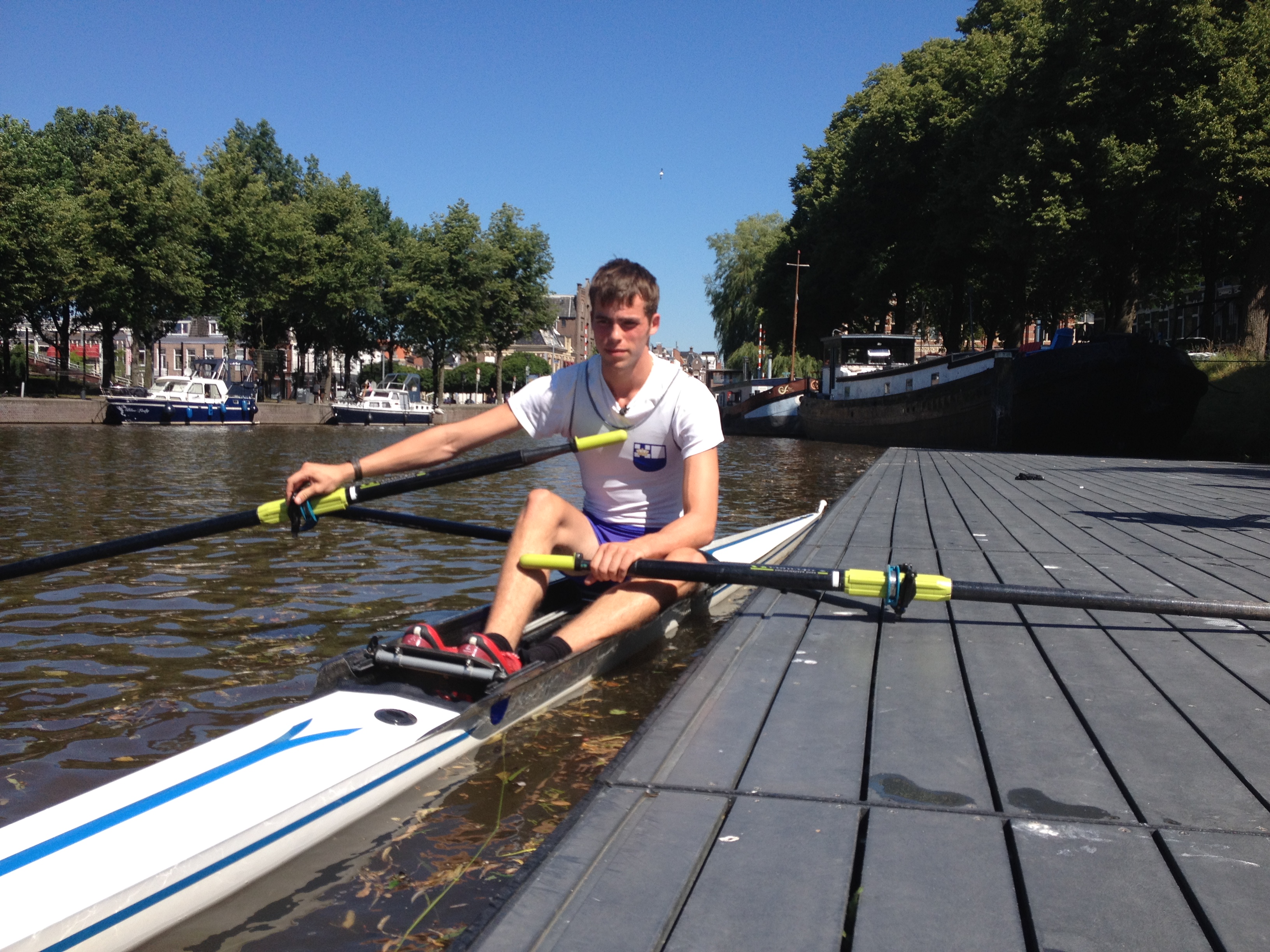 “Klopt. In vijf dagen krijgen ze de basisbeginselen uitgelegd. We starten in de skiff. Dat is een eenpersoonsroeiboot. En alles begint met je evenwicht bewaren. Hoe voorkom je dat je niet omslaat? In het begin wordt de boot vastgehouden, maar je zult steeds meer zelf moeten doen. Op een gegeven moment komen daar de roeibewegingen ook bij. Alles vindt plaats op het water voor onze roeivereniging. Dus in een veilige en gecontroleerde omgeving, waarbij, als het mis gaat, we direct in kunnen grijpen.”
