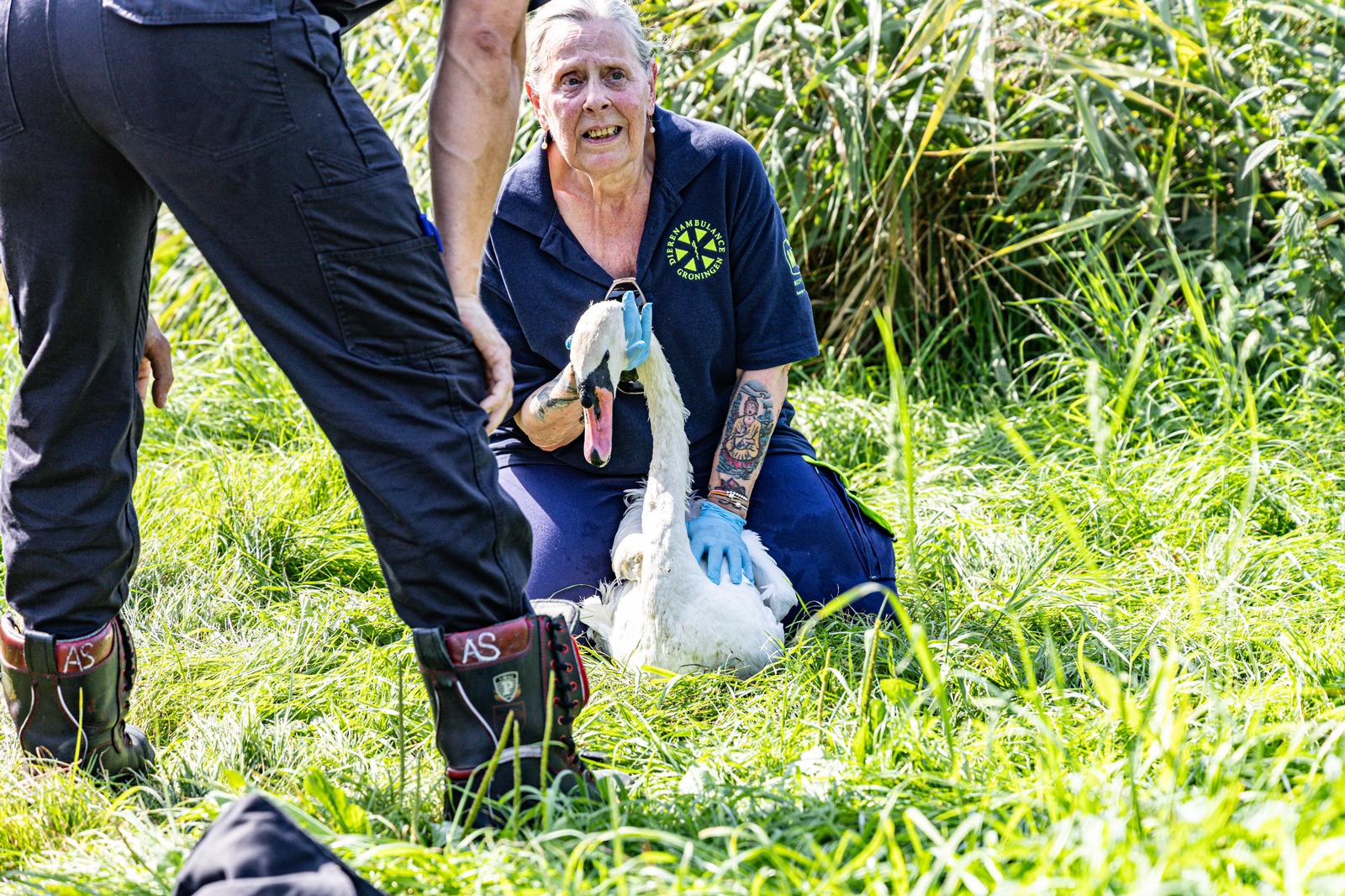 Een brandweerman in een waadpak is te water gegaan, en heeft de zwaan kunnen vangen. “Het dier is daarna overgedragen aan de medewerkers van de Dierenambulance. Zij zullen voor het dier gaan zorgen.” Volgens de fotograaf heeft er eerder op de dag een aanrijding plaatsgevonden. “Die aanrijding vond plaats op de Wolddijk. De zwaan is daarna naar een rustig plekje gegaan.” Wat de zwaan precies mankeert, gaat onderzocht worden.