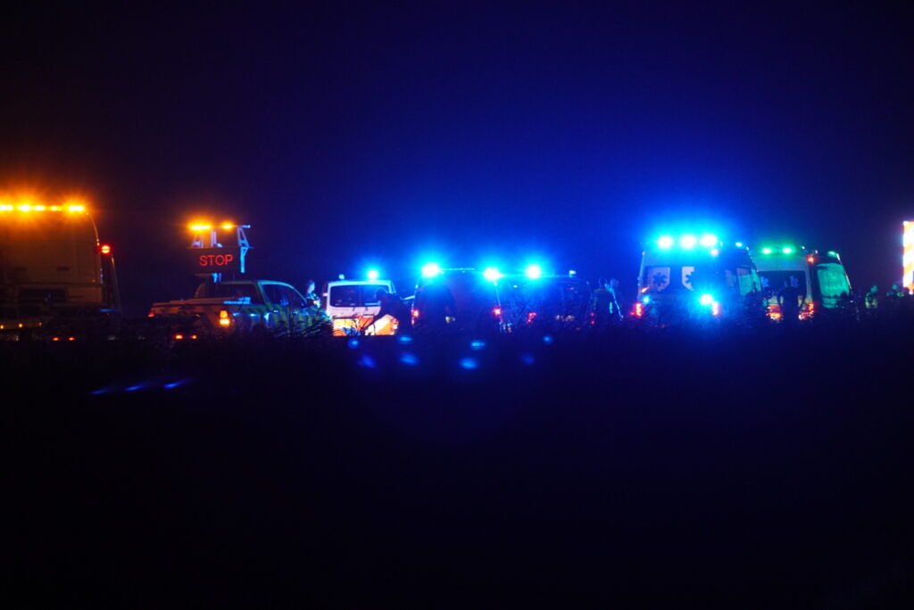 In de voorste auto zaten twee personen, in de achterste auto zaten ook twee personen. Ambulancemedewerkers hebben alle betrokkenen gecontroleerd, maar niemand hoefde mee naar het ziekenhuis. Een bergingsbedrijf heeft beide voertuigen weggesleept. Door de botsing lag er veel glas op de grond. Een politiewagen van de Koninklijke Marechaussee reed hierdoor lek. Ook deze wagen werd weggesleept. Een aannemer heeft het wegdek gereinigd. De politie doet onderzoek naar de toedracht. Rond 22.45 uur ging de weg weer deels open.