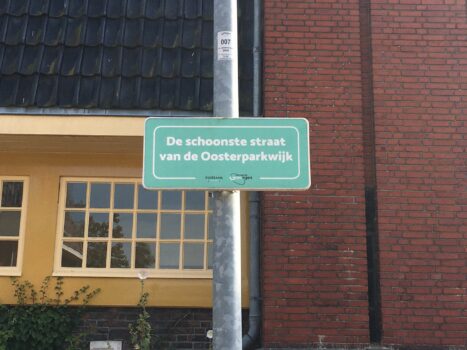 In de straat is het bordje ‘De Schoonste straat van de Oosterparkwijk’ opgehangen. Daarnaast zijn bewoners in het zonnetje gezet, waarbij een ijscoman trakteerde op ijsjes. De zwerfvuilteams zijn sinds 2019 actief. Vrijwilligers lopen iedere maandag gewapend met prikstok en vuilniszak door de wijk. “Sindsdien is de wijk zichtbaar schoner geworden. Mensen zijn overigens van harte welkom om een keer mee te lopen. Dat vinden we alleen maar leuk.”