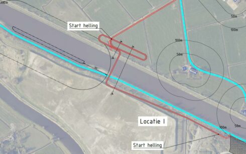 Een tekening waar de nieuwe Paddepoelsterbrug moet komen te liggen