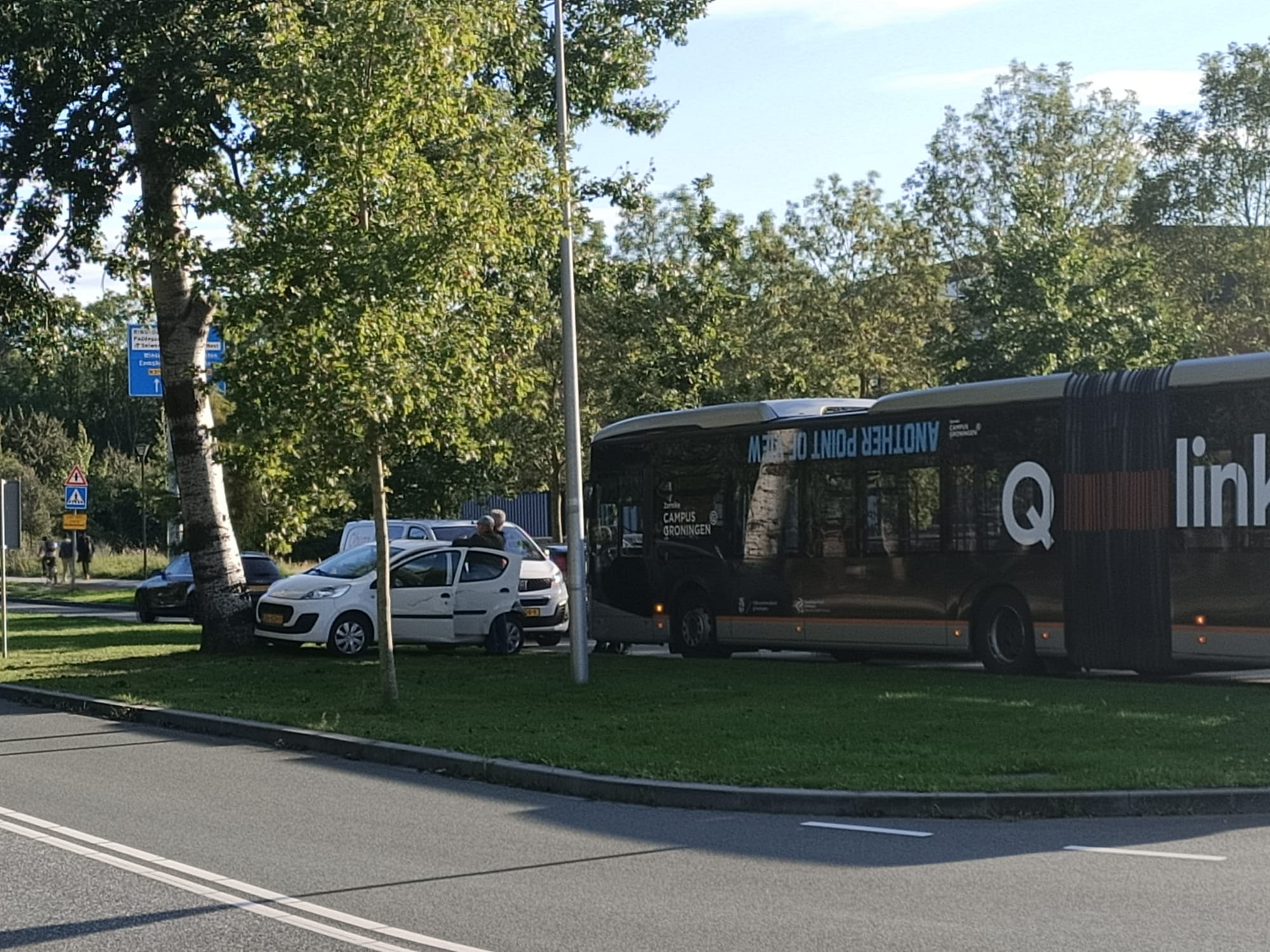 Op de Zernike Campus is maandagmiddag een lijnbus in botsing gekomen met een personenauto.