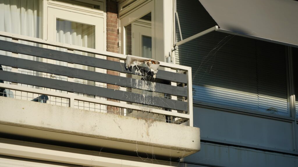 Dat ging vrij snel, want na een straal bluswater viel de plantenbak brandend op de stoep onder het balkon. Na de blusactie kwam ook een hoogwerker ter plaatse om te controleren of het vuur volledig gedoofd was.
