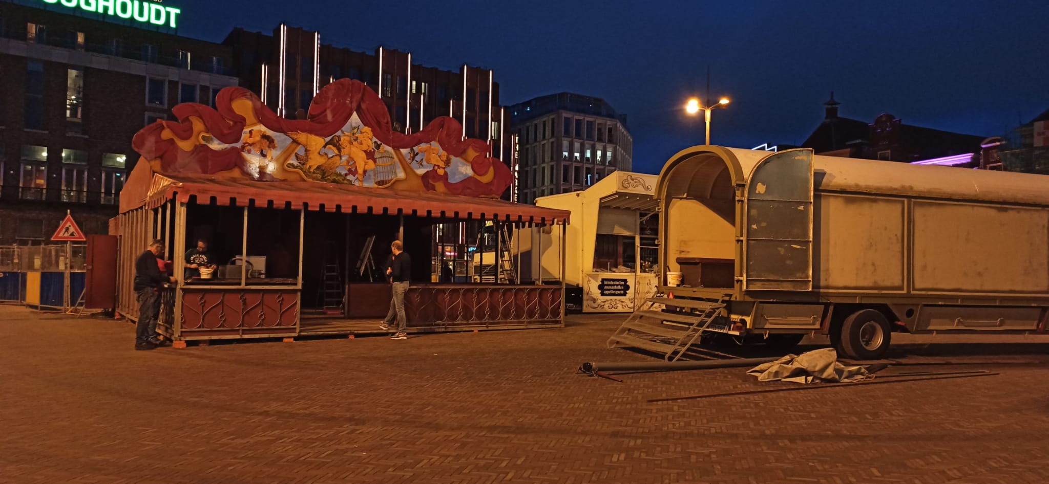 Op de Grote Markt is dinsdag begonnen met het afbreken van de poffertjeskraam van Trijnko Nijboer. Op dezelfde dag heeft de oliebollenkraam een plekje gekregen op de markt.