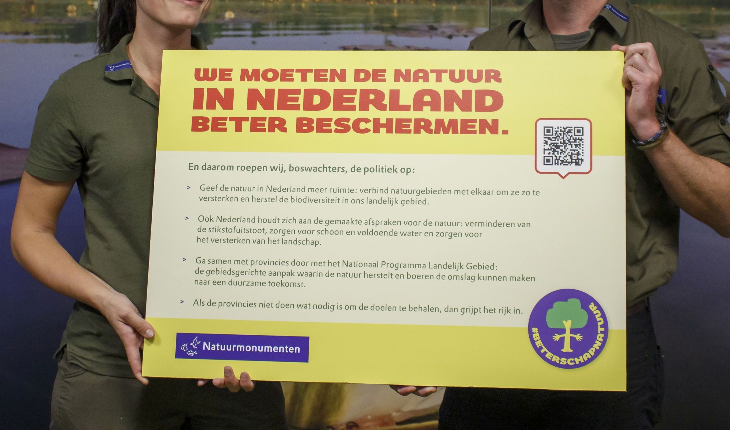 In de aanloop naar de verkiezingen deed Natuurmonumenten onderzoek naar de mening van Nederlanders over stand van de natuur. Daaruit concludeert Natuurmonumenten dat 86% van de Nederlanders wil dat de overheid de natuur in Nederland beter beschermt. Een coalitieakkoord met een goede aanpak voor natuurherstel is dan ook een must, stellen de boswachters. Zwiers is dan ook hoopvol. “We staan nu op een kantelpunt en kunnen dit nog een halt toeroepen. De natuur is veerkrachtig, maar dan moet er nu wel wat veranderen. Wij boswachters kunnen het niet alleen oplossen. De politiek is nu aan zet.”