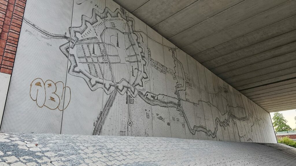 Kramer benadrukt dat de hersteloperatie om de graffiti te verwijderen van het kunstwerk, wat één oude kaart met skyline van Groningen verbeeldt, erg moeilijk is. “Dit kunstwerk bestaat eigenlijk uit twee lagen beton. De onderste laag is zwart en daar zit een dunne laag lichter beton overheen als een soort coating. We denken nu dat we, met hulp van experts, deze coating voorzichtig kunnen schoonmaken. We moeten kijken of dat lukt.”