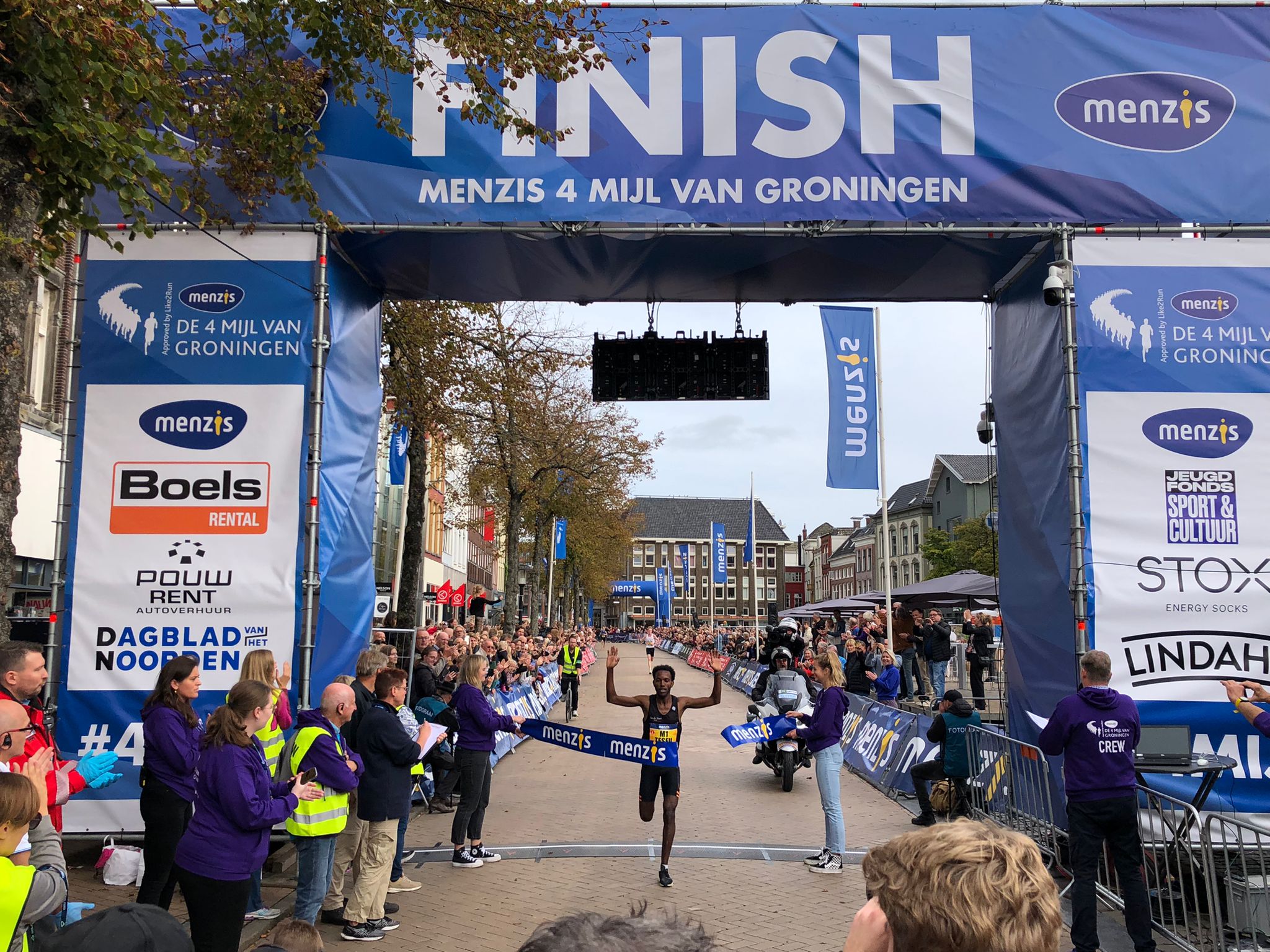 Filmon Tesfu heeft zondag de 36ste editie van de 4 Mijl van Groningen gewonnen. Bij de vrouwen kwam Sarah Lahti als eerste over de streep.