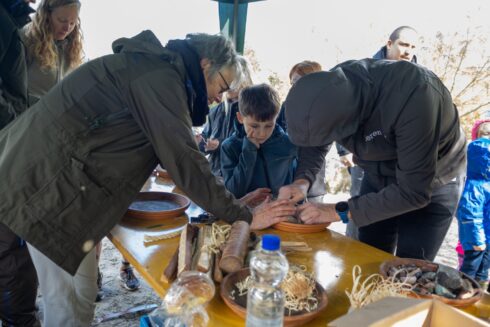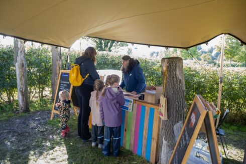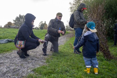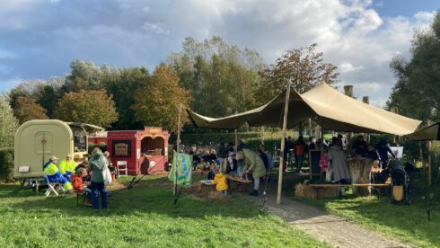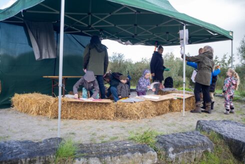 Terwijl het soms even flink regende, was er ook ruimte om op te warmen. Natuurmonumenten had warme drankjes en poffertjes geregeld voor de kinderen en hun ouders. Foto: Bart Zwiers