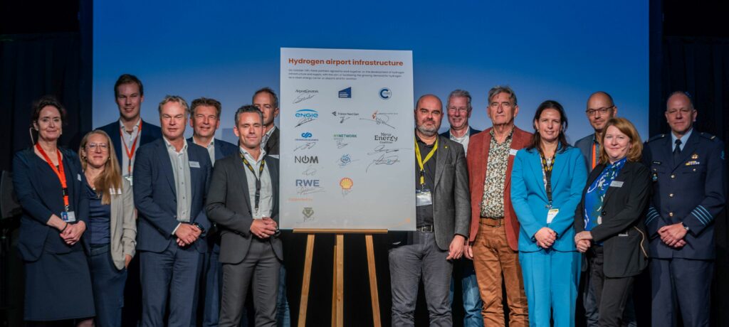 Twaalf grote bedrijven en organisaties in de luchtvaart- en energiesector hebben vrijdag hun handtekening gezet om de ontwikkeling en levering van waterstofinfrastructuur naar en op Groningen Airport Eelde in gang te zetten.