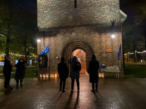 In Haren werd het een ingetogen avond. “Rond 20.00 uur luidden de klokken van de kerk. Mensen die een kaarsje aan wilden steken, konden dat doen. Daarna hebben we hand in hand, in een kring, voor de kerk gestaan. Het was een moment van stilte, om stil te staan bij de verschrikkingen die daar de afgelopen weken hebben plaatsgevonden en nog steeds plaatsvinden. Daarna konden mensen met elkaar in gesprek, was er muziek te horen en kon er iets gedronken worden.”