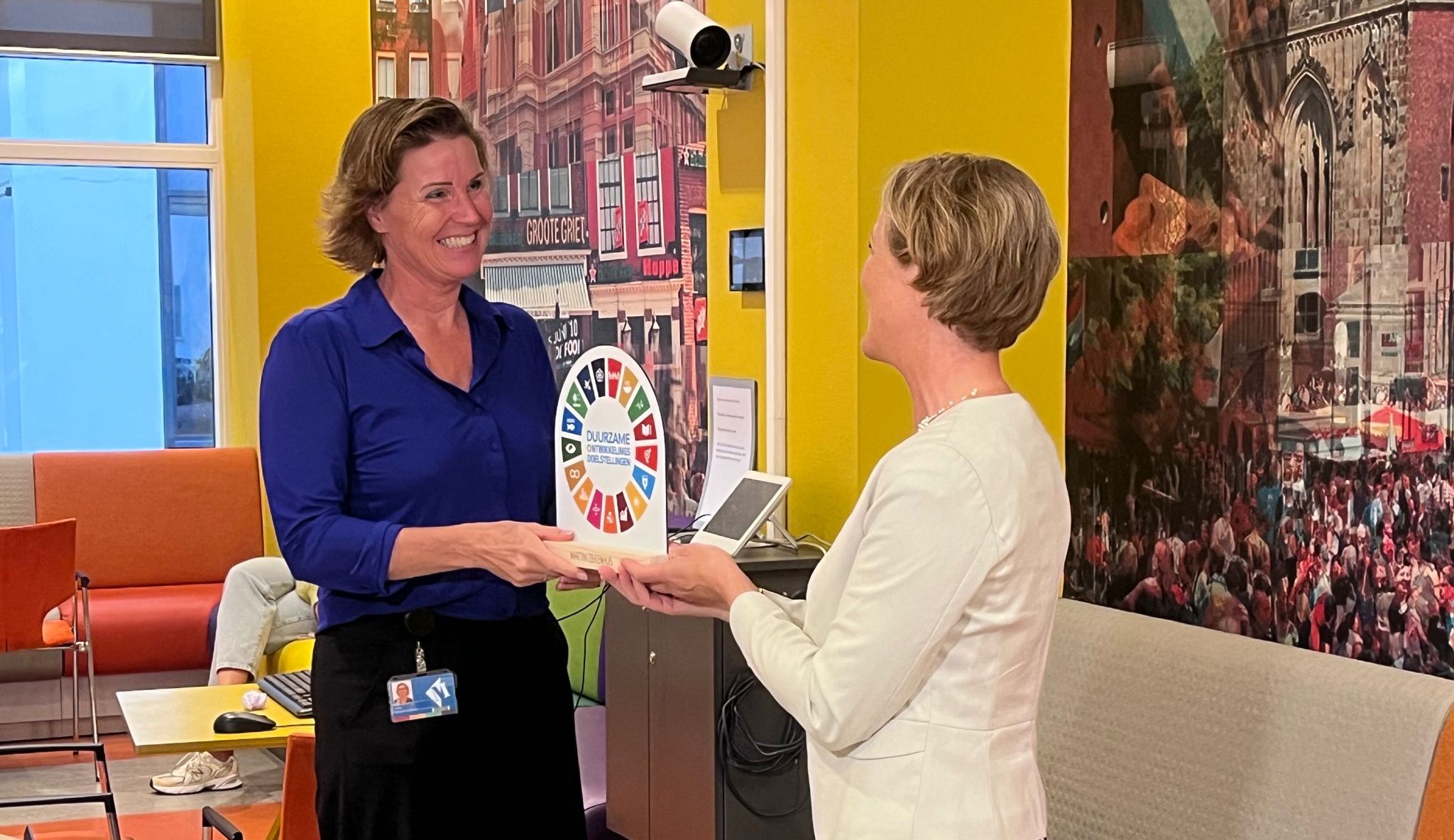 Sandra Pellegrom, de nationale coördinator voor de Sustainable Development Goals (SDG’s) van het ministerie van Buitenlandse Zaken, reikte het SDG-predicaat uit aan bestuurslid Tamara Kroll. Het SDG Predicaat erkent en beloont organisaties die zich onderscheiden in het nastreven van de Duurzame Ontwikkelingsdoelen (SDG’s) van de Verenigde Naties.