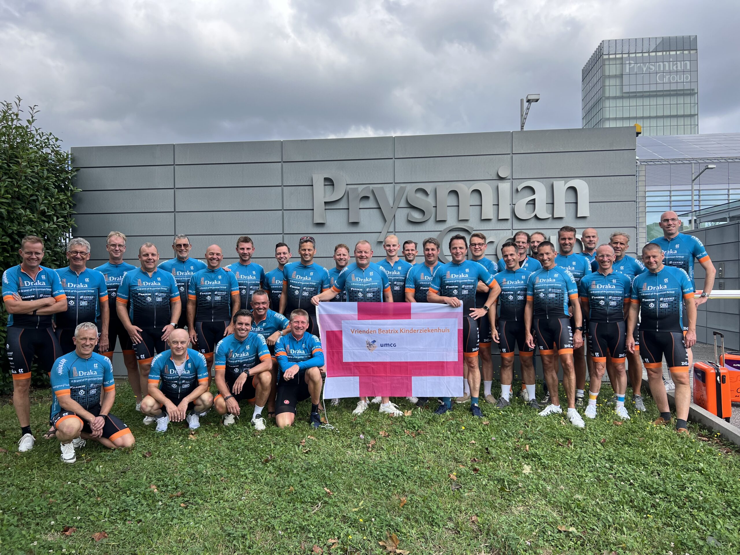 Het gaat om medewerkers van Harwig Installatietechniek uit Emmen, medewerkers van Prysmian-Draka en enkele relaties. De start van de fietstocht was bij het hoofdkantoor van Prysmian in Milaan. Prysmian is een producent van onder andere kabels. Na twee etappes hebben alle deelnemers de fietstocht van 21,5 kilometer volbracht en de top op 2758 meter hoogte bereikt.
