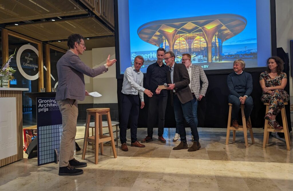 In het Groot Handelshuis aan de Grote Markt zijn vrijdagmiddag de prijzen voor de beste nieuwe architectuurprojecten van Groningen uitgereikt. De vakjury gaf haar Groninger Architectuurprijs aan het project SuperHub in Meerstad. Sociaal ontwikkelbedrijf iederz, met haar nieuwe gebouw aan de Silkeborgweg, kreeg de publieksprijs.