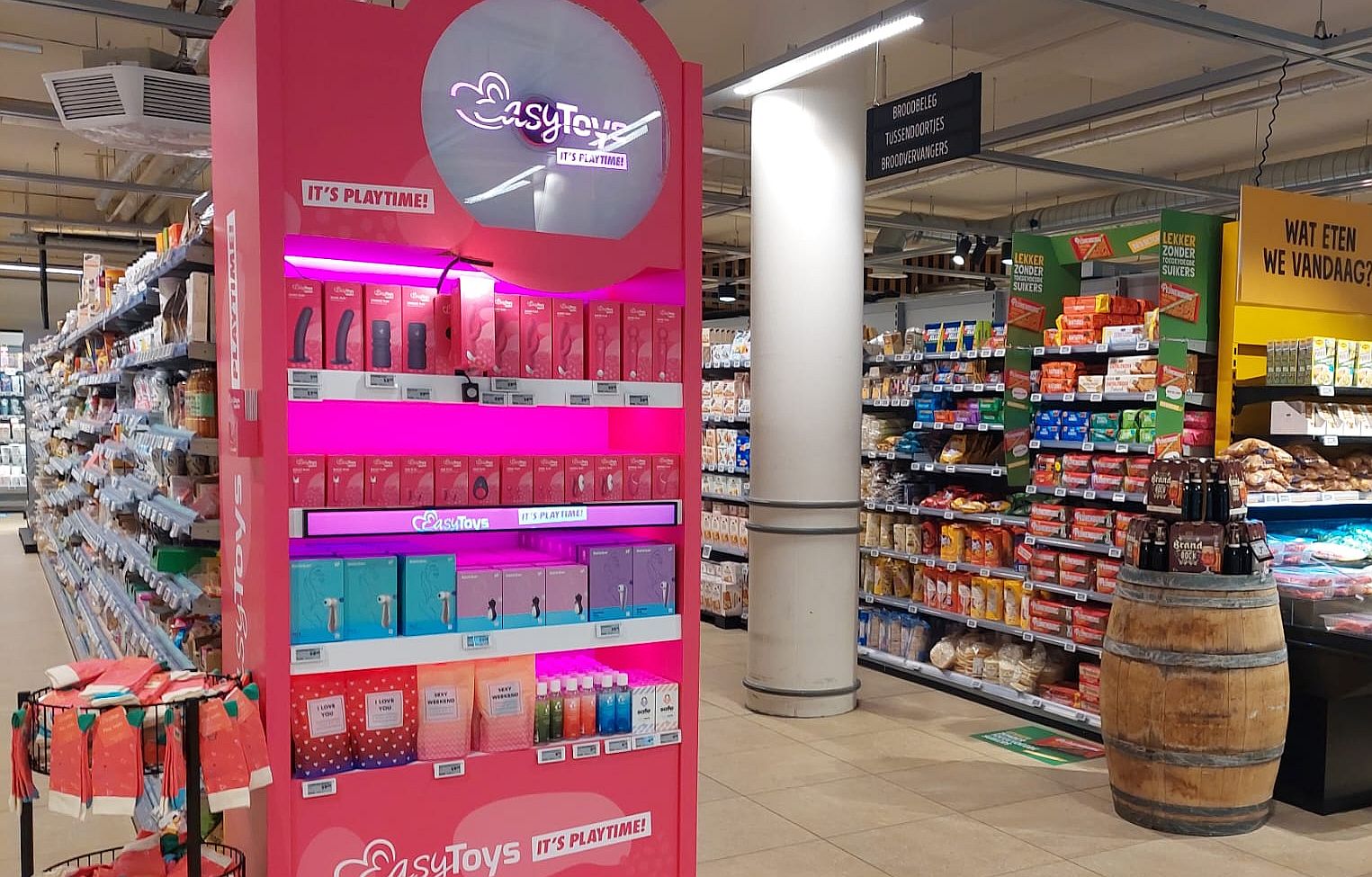 De eigenaar van de twee supermarkten, de Maripaan Groep, is een samenwerking aangegaan met de erotische webwinkel EasyToys. In de supermarkten staan opvallende displays in de kenmerkende roze kleur van EasyToys. Volgens de seksspeeltjes-webshop betreft het een pilot van drie maanden.