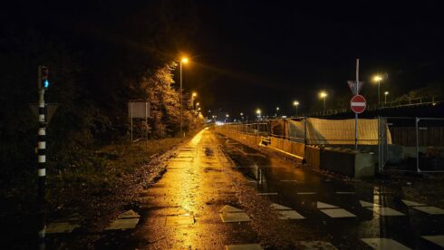 Verkeer richting Helpman wordt omgeleid met borden. Deze route voert naar de volgende afrit, afrit 37, bij de Europaweg. Daar word je de ringweg weer opgeleid in de andere richting, waarbij je via afrit 36b Helpman de Hereweg op kunt.