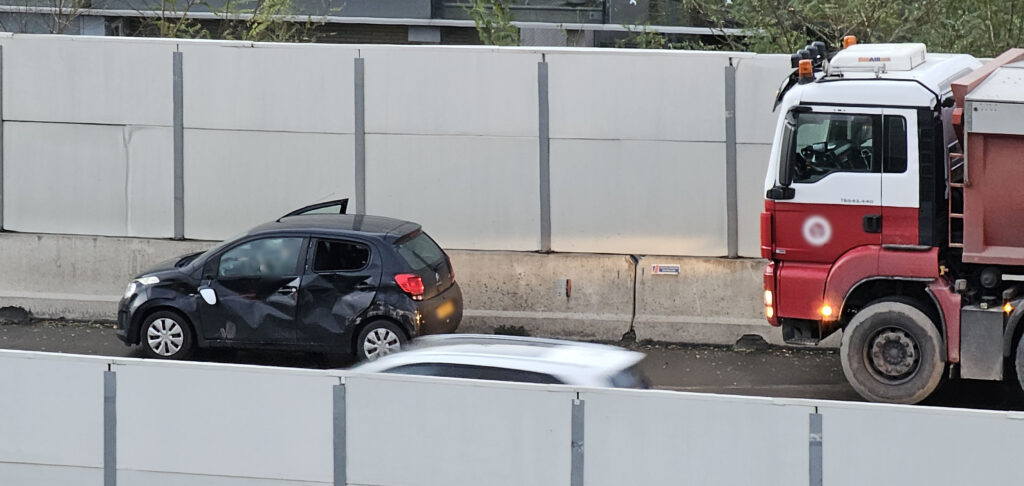 Een botsing tussen een auto en een vrachtwagen zorgde vrijdagmiddag voor flink wat schade en verkeershinder op de zuidelijke ringweg.
