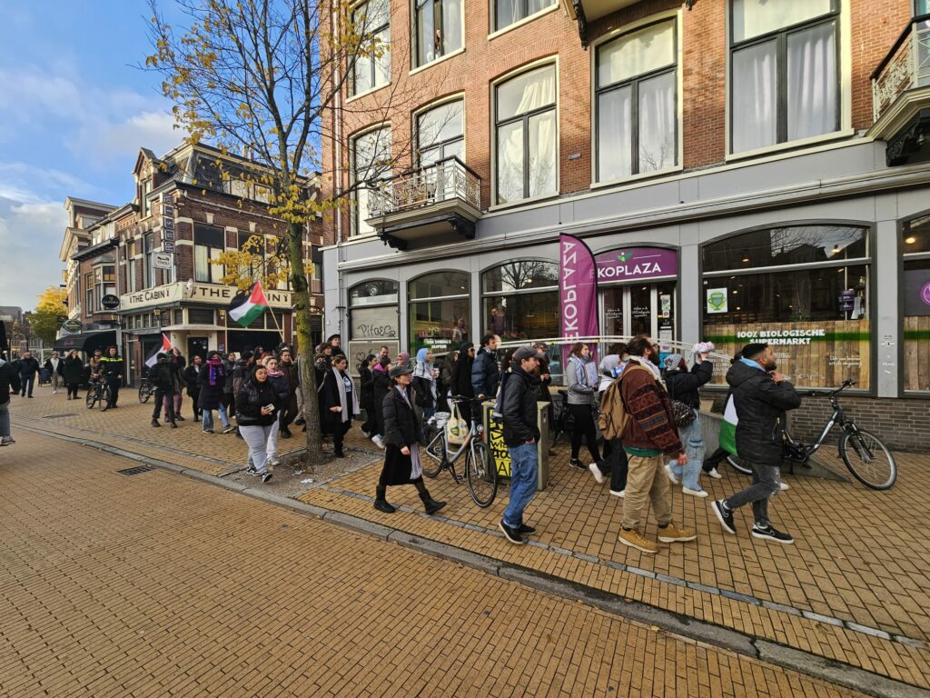 Groep Pro-Palestina demonstranten loopt door binnenstad