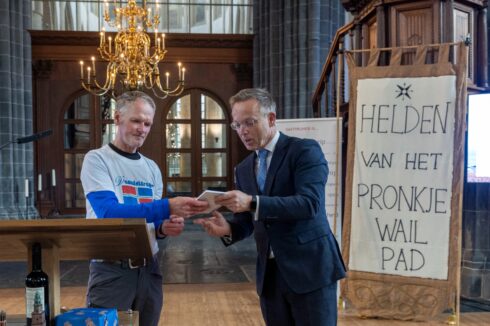 SCOREN met Groningen. Dat is de titel van een boek van Peter Velthuis, waarbij het eerste exemplaar zaterdag werd overhandigd aan Commissaris van de Koning René Paas (CDA). Velthuis nam zaterdag afscheid als directeur van Tocht om de Noord.