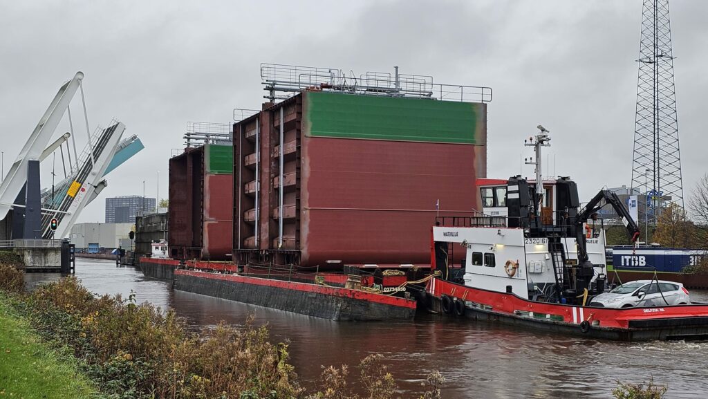 Een schip met twee grote delen van een nog te bouwen schip moest door de brugopening van het Winschoterdiep. Daardoor liep het verkeer op de zuidelijke ringweg, in beide richtingen, flinke vertraging op. Files tot vier kilometer stonden voor de slagbomen te wachten. Pas na een kwartier gingen de brugdekken weer omlaag.