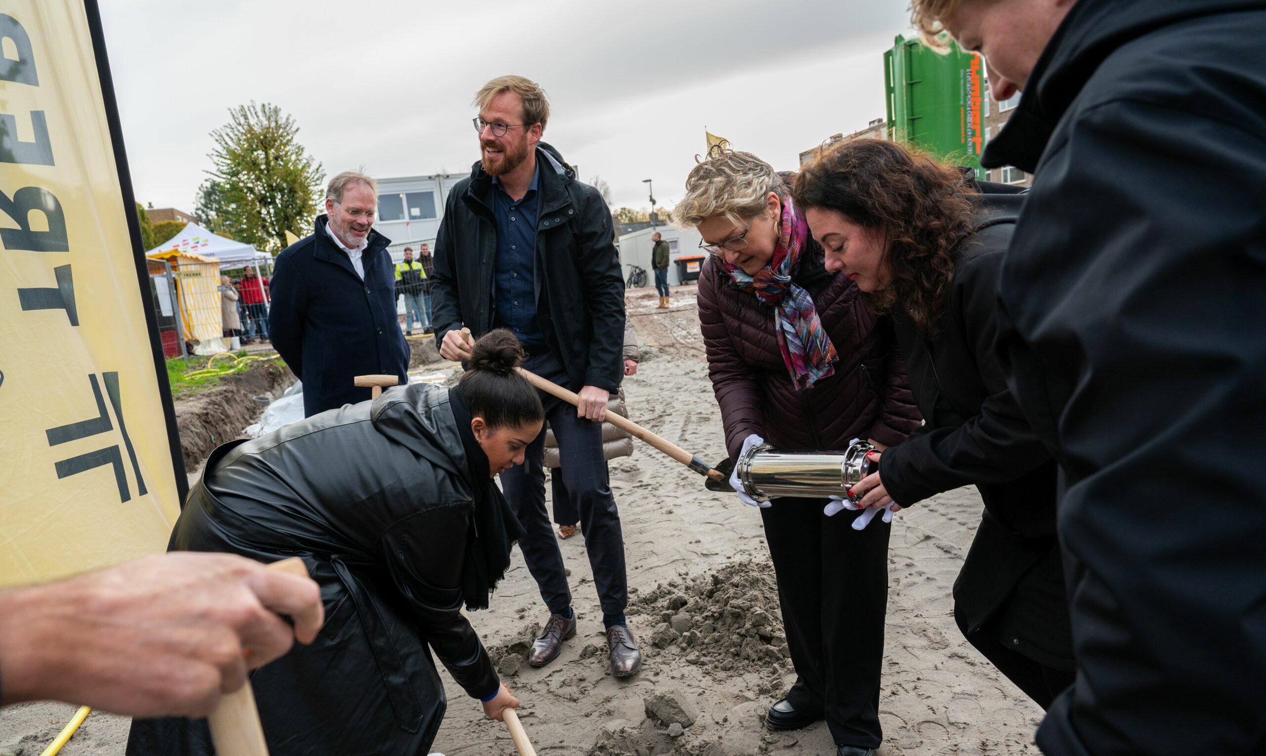 Het feestelijke moment werd samen met buurtbewoners, ontwikkelende bouwer Trebbe en de gemeente Groningen gevierd. Buurtbewoners begroeven een speciale tijdscapsule, met daarin onder meer stukjes van de oude woningen. In de Spieghelstraat zijn de afgelopen tijd vijftig woningen en veertien garageboxen gesloopt. In de capsule zit ook een speciale tekst van Cissy Joan, winnaar van de Groninger cultuurprijs, over wonen in De Wijert. Joan maakte de tekst na gesprekken met bewoners.