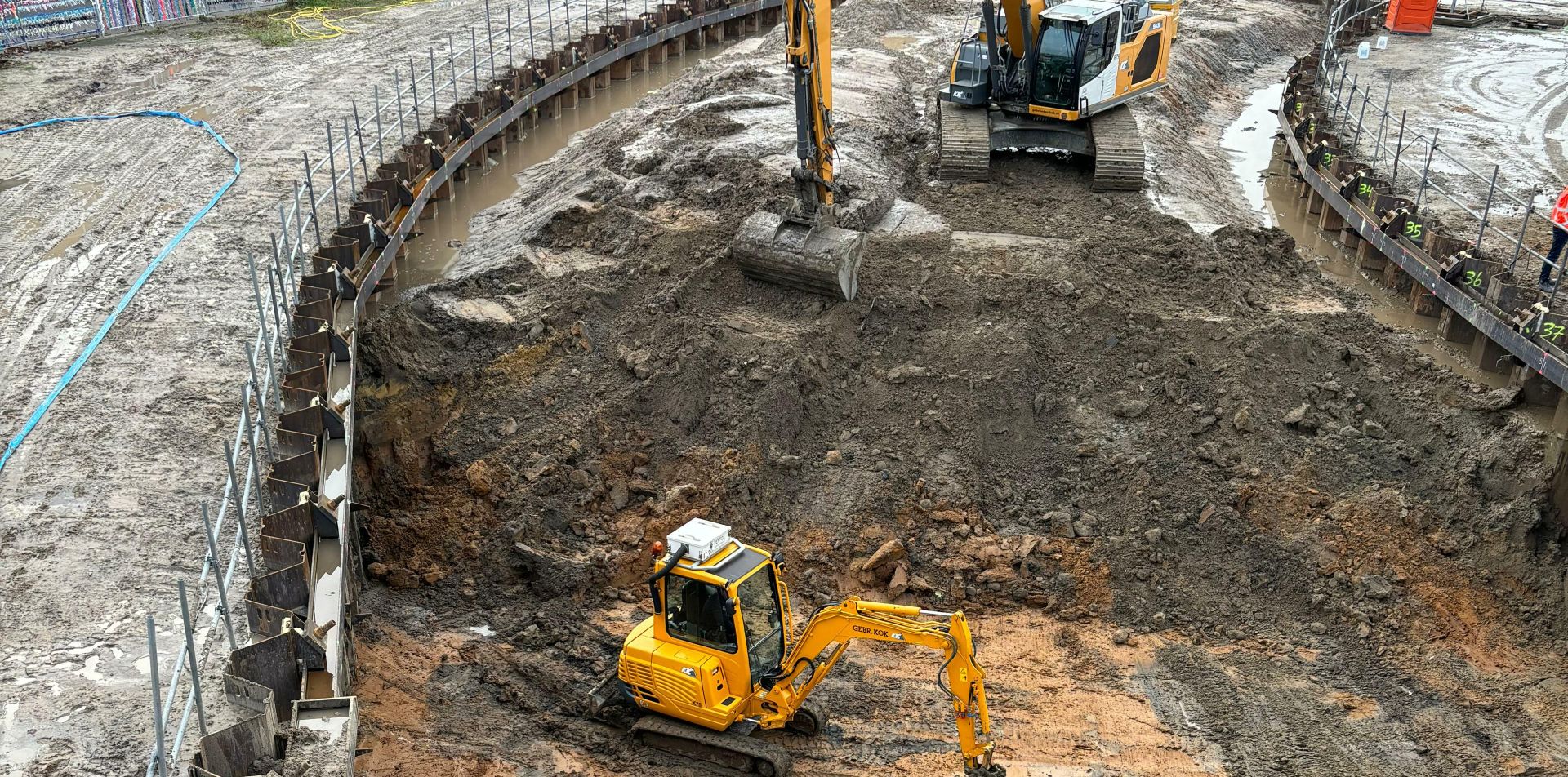 In september en oktober zijn bij de Blauwe Brug, de loopbrug over de sporen van het Hoofdstation, alvast damwanden in de grond getrild en geheid. Die houden de muren van de nieuwe tunnel overeind. Vervolgens zijn aannemers begonnen met het verwijderen van zand uit de nieuwe tunnel. Maar nu de bouwkuip twee meter diep is, begint de grond rond de kuip op de damwanden te drukken.